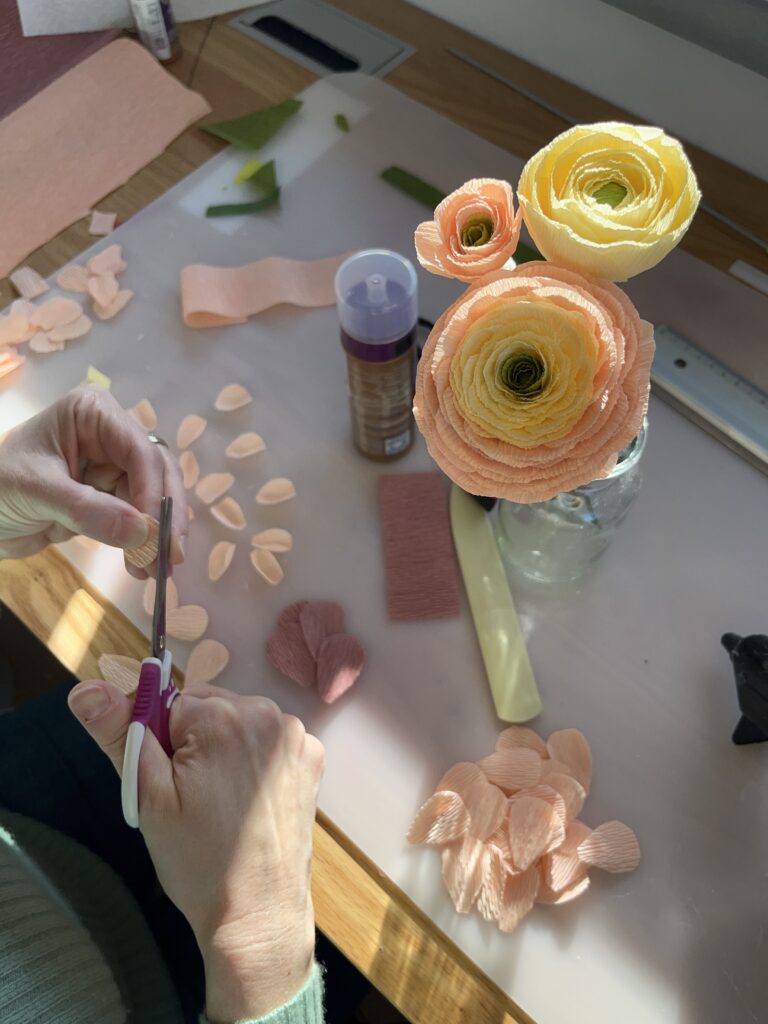 Jede Papierblume wächst bei mir Schritt für Schritt im Atelier.